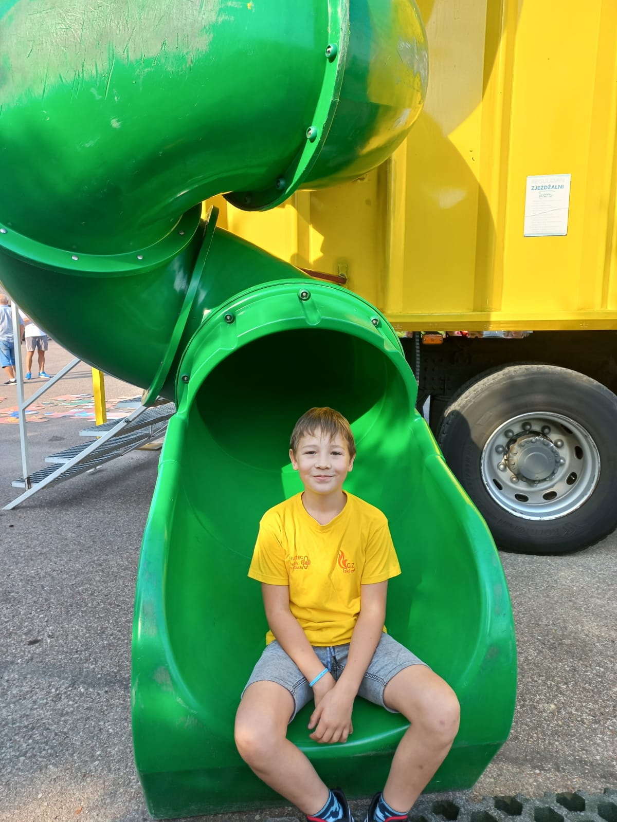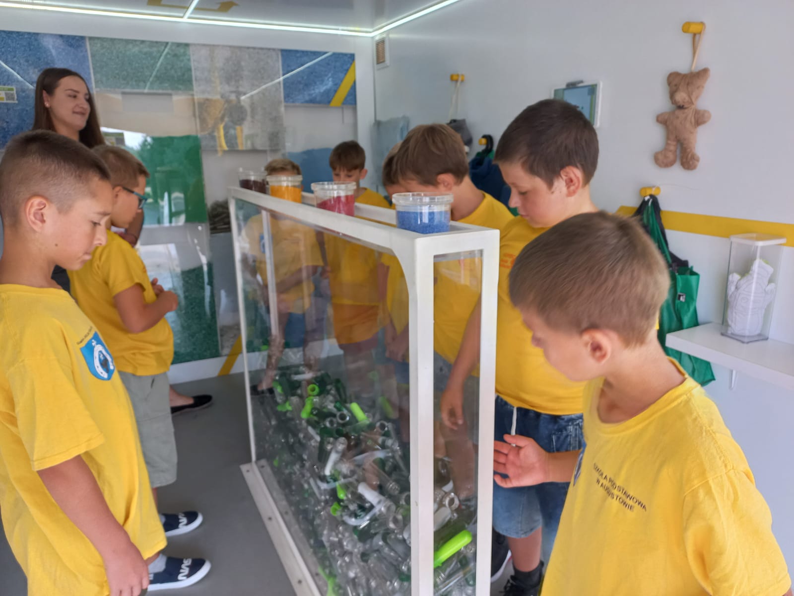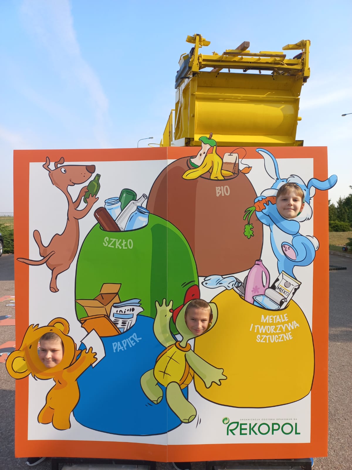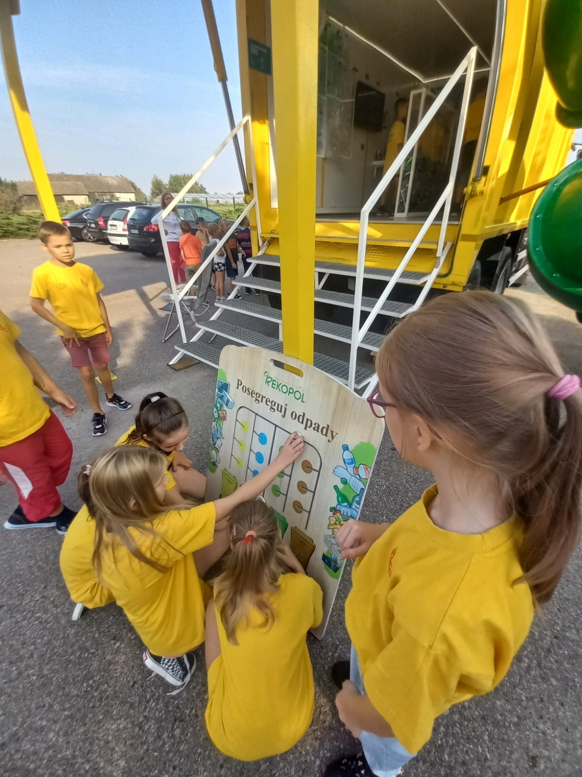 Po przekazaniu nagród rzeczowych przyszedł czas na nagrodę główną – wizytę Mieci. 13 września mobilne centrum pojawiło się przed szkołą. Entuzjazm i zainteresowanie dzieci i młodzieży było ogromne! Zwycięzcy powitali śmieciarkę w żółtych koszulkach, nawiązujących do koloru pojazdu. Podczas prowadzonych krótkich warsztatów sprawdzali swoją wiedzę na temat segregacji odpadów, a także poznawali ciekawostki ze świata recyklingu. Zabawom i pytaniom nie było końca. Młodzi zdobytą wiedzę obiecali szerzyć między rówieśnikami i rodzinami. Jak zawsze, również i tym razem dużym zainteresowaniem cieszyła się zjeżdżalnia.