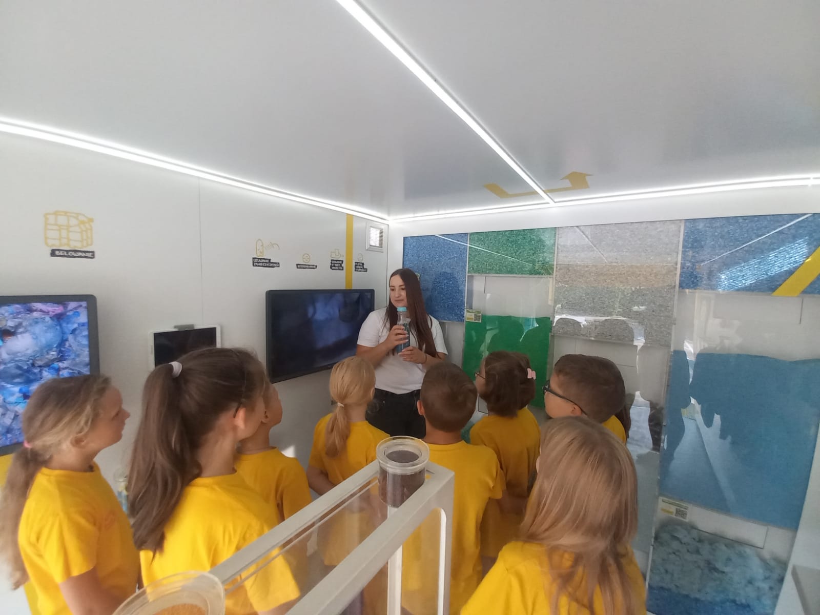 Dlaczego warto segregować butelki PET? Jak wygląda proces ich recyklingu? Co może powstać w wyniku ich przetworzenia? Właśnie na te pytania uczniom odpowiedziała Miecia – nietypowe centrum recyklingu. Miecia nie jest jednak zwykłą śmieciarką – w jej wnętrzu zamiast odpadów znajduje się interaktywna wystawa pokazująca, jak mogą stać się wartościowymi surowcami. Uczniowie mogli nie tylko zobaczyć, ale także poczuć i dotknąć tworzywo powstałe w wyniku recyklingu butelek PET. Wizyta śmieciarki była jedną z głównych nagród w konkursie „Papier, plastik, szkło i bio – segregacja to jest to!”, realizowanym w ramach projektu Re_kologia (www.rekologia.pl).